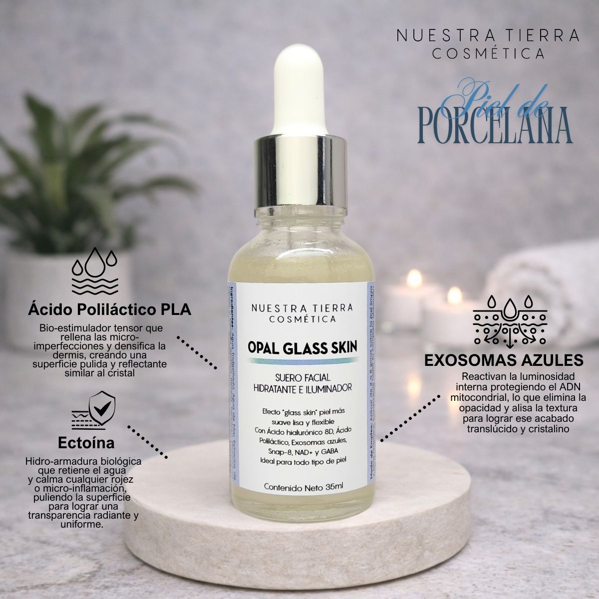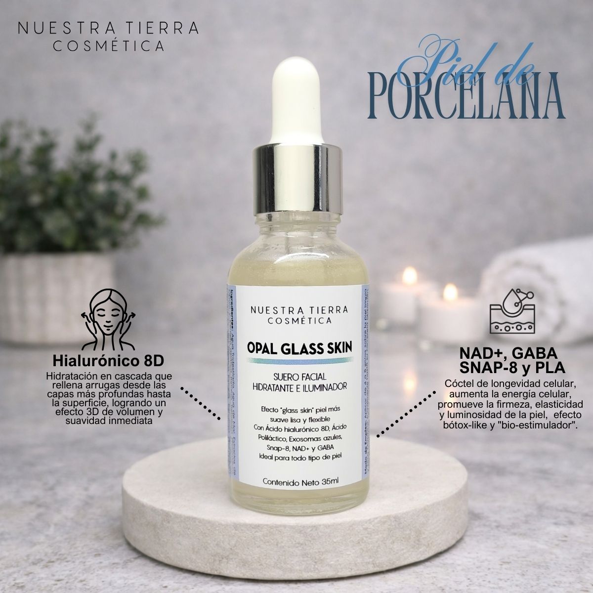 OPAL GLASS SKIN está diseñado para reprogramar la vitalidad de tu rostro. No solo hidrata y humecta; reconstruye la apariencia de la piel desde su estructura interna gracias a una sinergia avanzada de activos biotecnológicos El resultado: Una piel con efecto glass skin (el acabado traslúcido, firme y radiante de un cristal o de la porcelana).