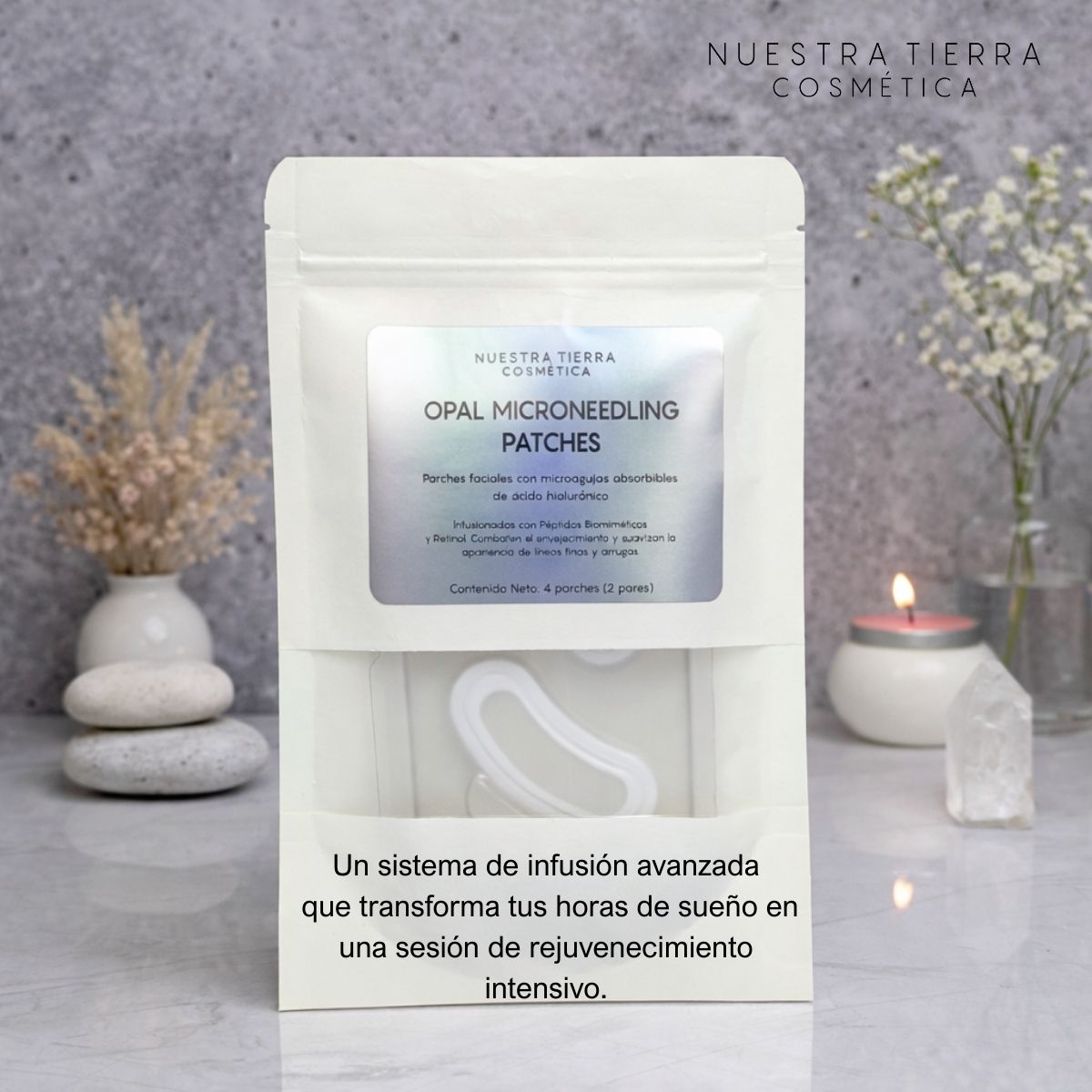 OPAL MICRONEEDLING PATCHES representa la evolución del cuidado facial, utilizando micro-estructuras absorbibles de Ácido Hialurónico que penetran suavemente la barrera cutánea para entregar una infusión de activos directamente donde la piel más lo necesita. Al aplicarlos sobre el contorno de ojos, las líneas de expresión o el entrecejo, estas micro-agujas comienzan un proceso de disolución lenta, liberando un potente cóctel de Péptidos Biomiméticos y Retinol que combaten el envejecimiento desde el interior.