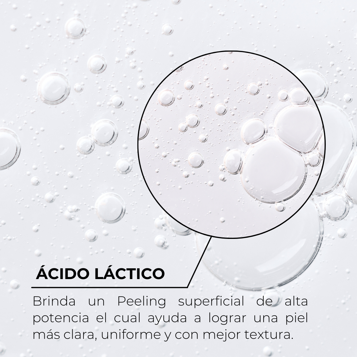 El Ácido Láctico es un Alfa Hidroxiácido (Aha) con propiedades exfoliantes e hidratantes únicas, además mejora la textura de la piel, su tono y su aspecto en general.