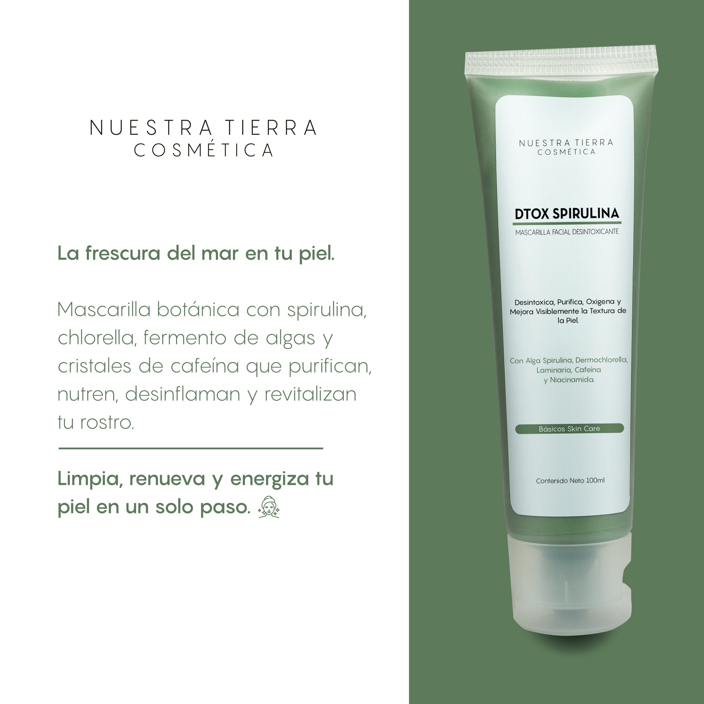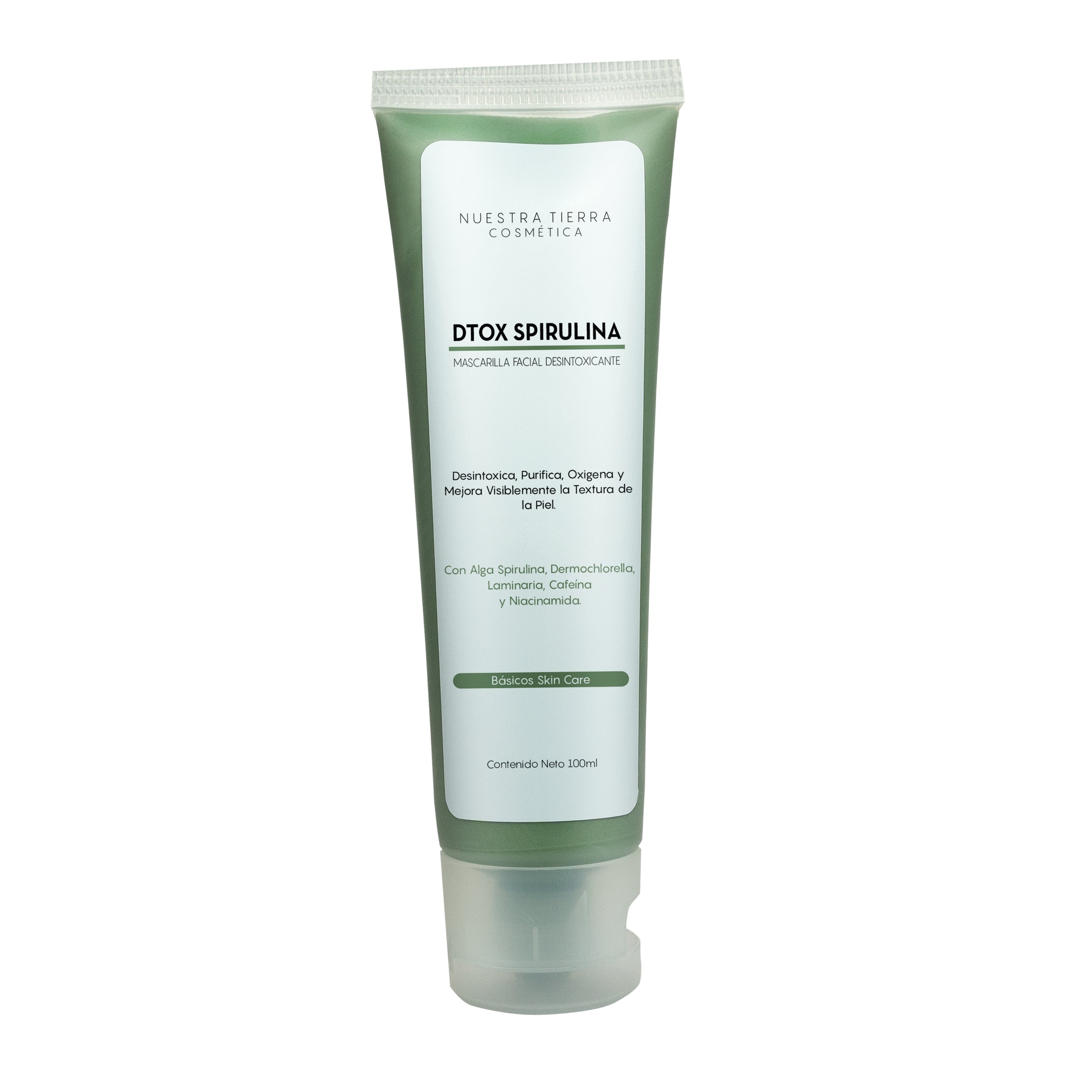 Básicamente un Green Smoothie para tu piel. Tenemos una mascarilla Dtox con Carbón activado que es excelente para cutis graso, mixto o acneico pero es demasiado intensa para cutis sensible así que por ello nace nuestra MASCARILLA DTOX SPIRULINA la cual formulamos a base de arcillas, un poderoso Fermento de Algas Marinas, Spirulina, Chlorella, Laminaria Digitata, Chondrus crispus (Musgo de Irlanda), Centella Asiática, Moringa, Niacinamida, Alantoína Vegetal y Cristales de Cafeína.
