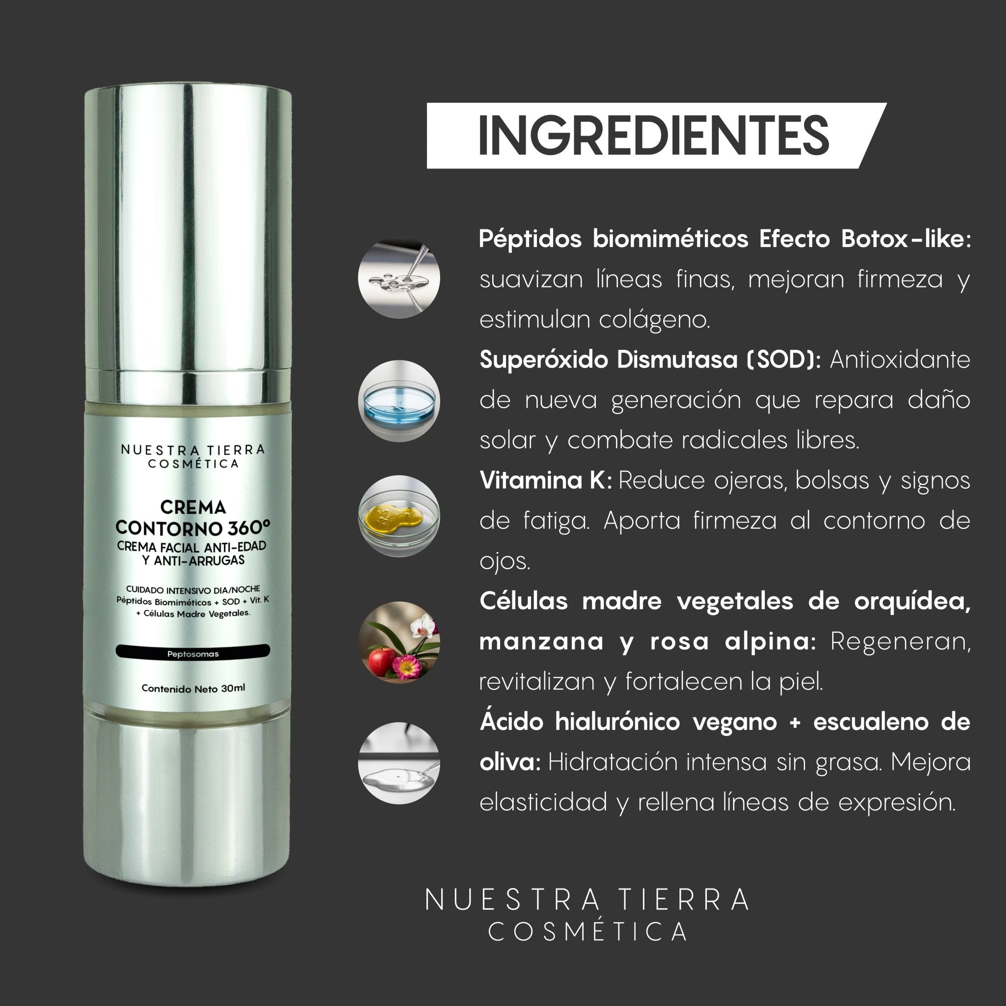 Crema facial anti-edad y anti-arrugas con Péptidos Biomiméticos, Superóxido Dismutasa, Vitamina K y Células Madre Vegetales.