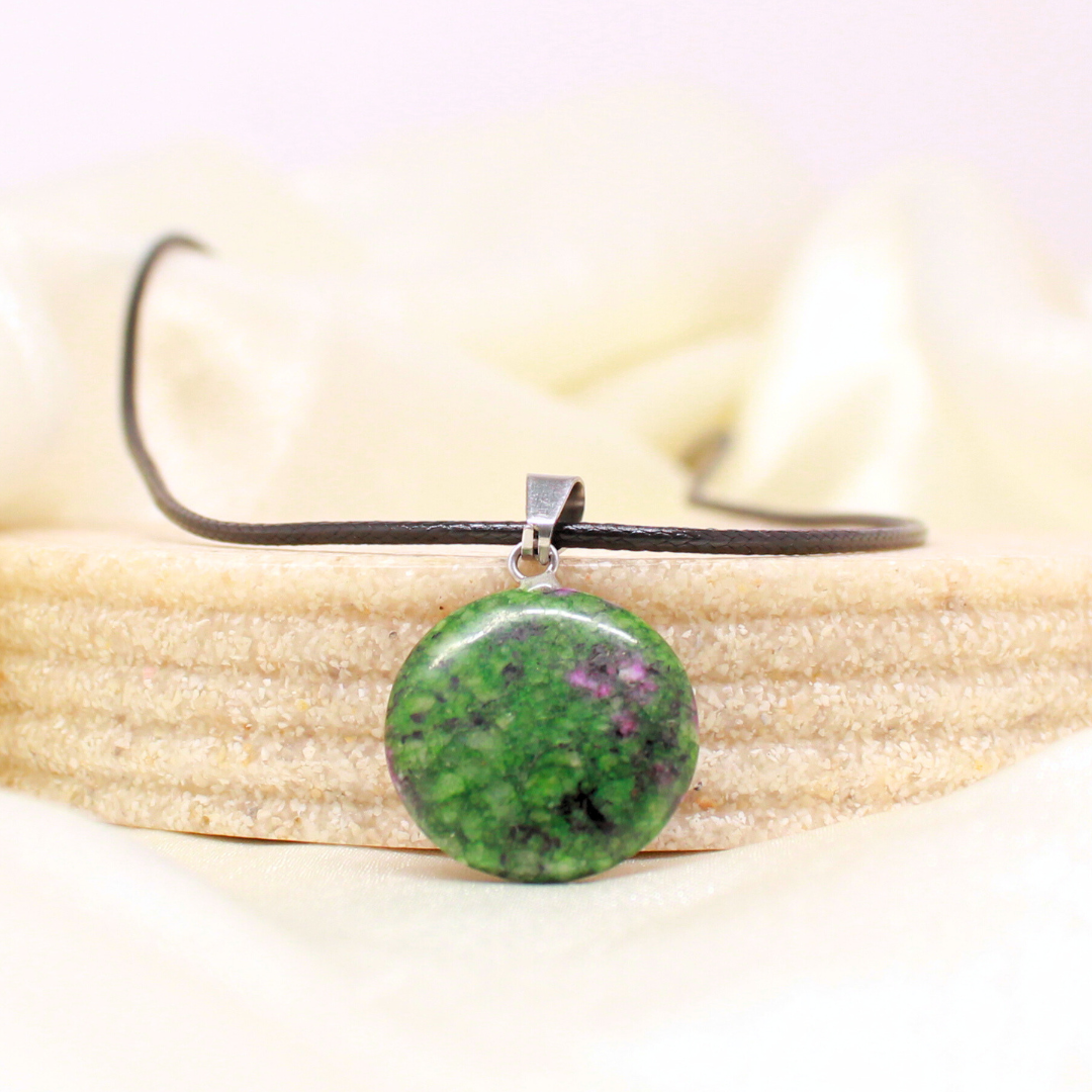 Cada pieza es única: sus tonos verdes intensos y vetas naturales reflejan la energía de crecimiento, sanación y claridad que simboliza esta gema ancestral.